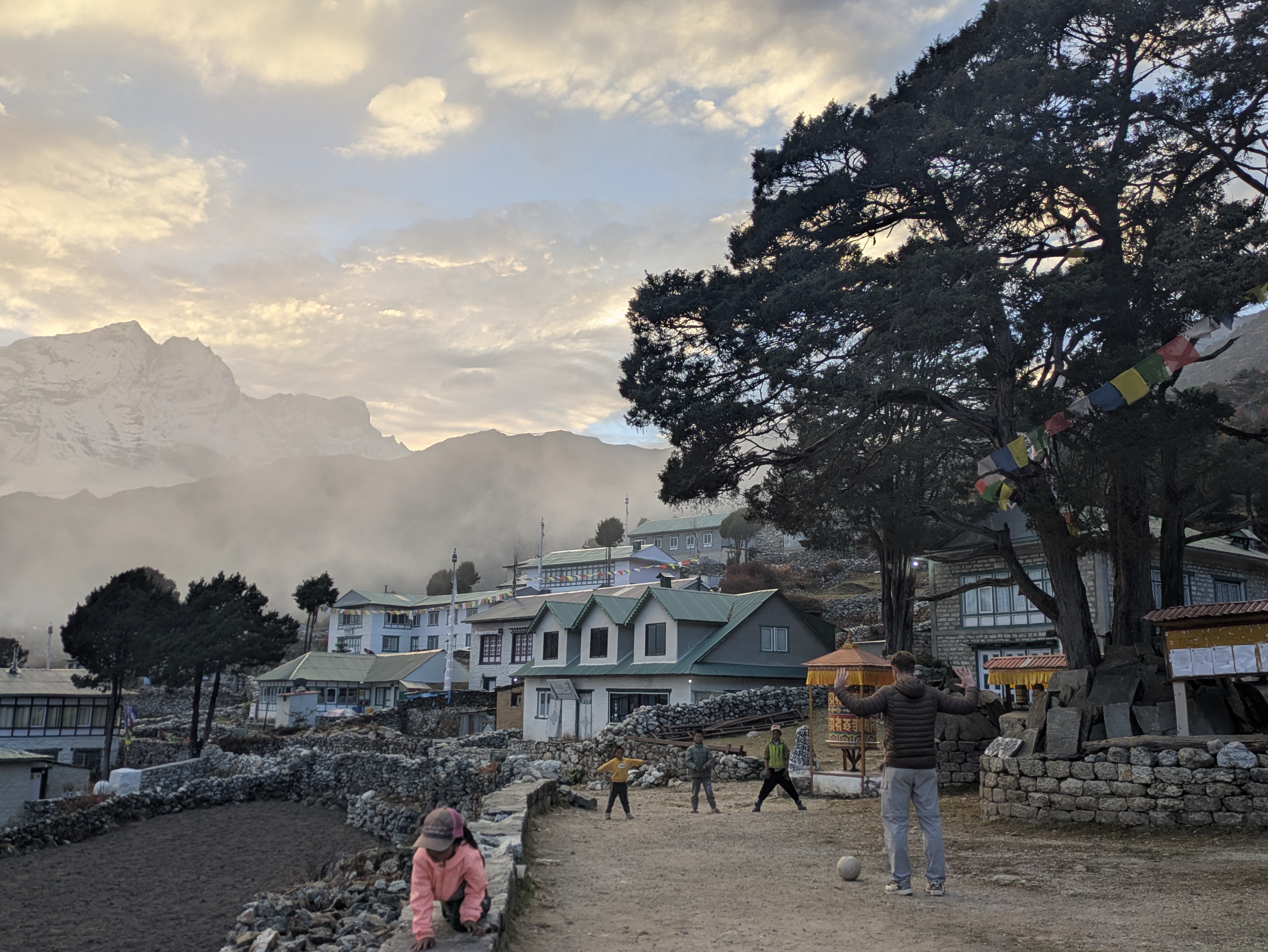 Je retrouve aussi l’équipe d’Indiens de Manjo à ma grande surprise. Nous rigolons de l’étroitesse du monde. Demain, ils se rendent aussi à Gorak Shap, le dernier “village” avant le camp de base de l’Everest. Ils me proposent de faire la route avec eux demain. Je décline, ils prévoient de se lever avant l’aurore pour gravir tôt le surplomb au-dessus de Thulka.